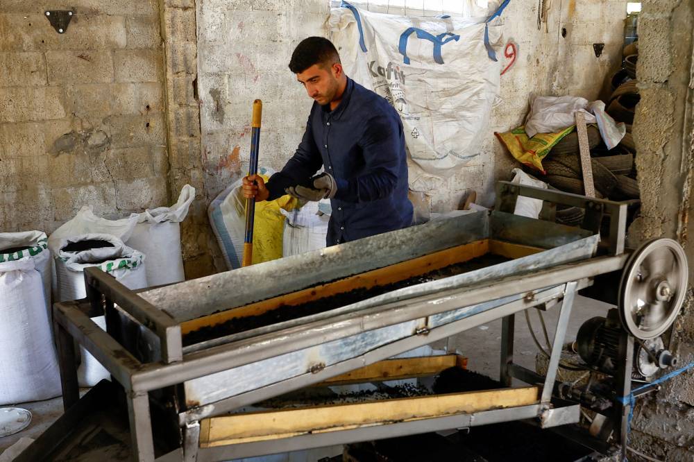 شاب في غزة يحول إطارات السيارات لمواد عشب صناعي